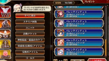千年戦争アイギス あれっ!? レギーナからのチョコは!?[千年戦争アイギス] 場末のエロゲー崩れこと『千年戦争アイギス』にはバレンタインチョコのシステムがあり、毎年2月14日に3人からチョコがもらえる。 3人が選ばれる基準は、「1.好感度が高い順」「2.好感度に差がない場合は、取得経験値が多い順」だ。 ちなみに、2の... 2021.02.16 15 千年戦争アイギス