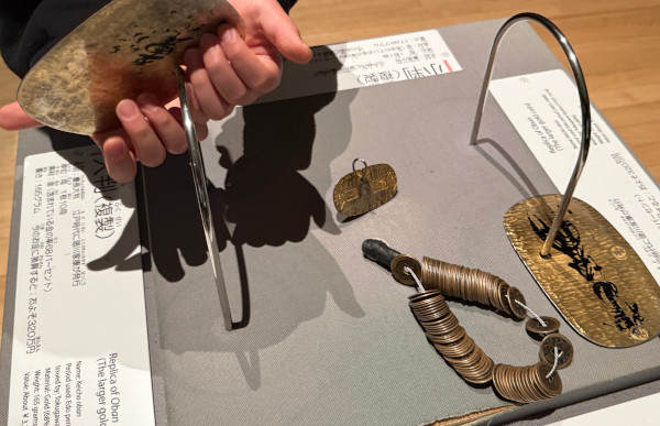 昔の小判を実際に持ち上げてその重さを体感したり、