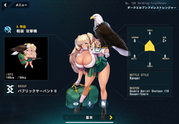 | 14 | 5 | クノイチ・エンライ | 67,186 | A | バイオロイド | SS | 軽装型 | 攻撃機 | 3 | 37,254 |