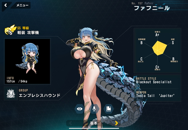 | 2 | 1 | ファフニール | 134,044 | A | バイオロイド | SS | 軽装型 | 攻撃機 | - | - |