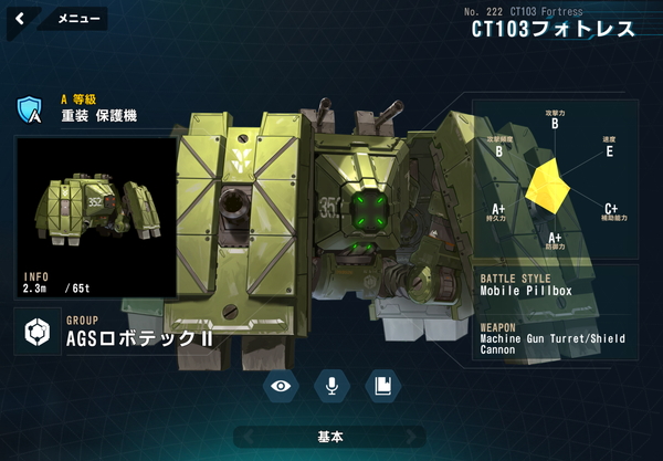 | 4 | 2 | レモネードベータ | 111,361 | D | バイオロイド | SS | 軽装型 | 支援機 | - | - |