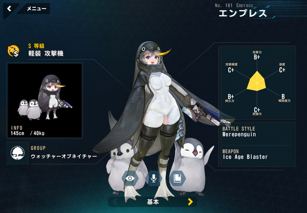 そして、ぼくが個人的にいちばん好きなバイオロイドはSランク軽装型攻撃機エンプレスなのだが、彼女もSランク以下限定のランキングなら余裕で最上位に……