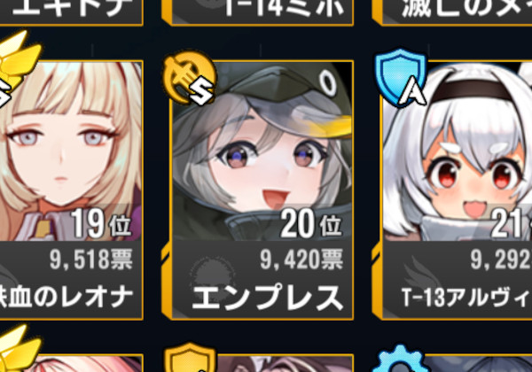 当方スレイプニール推し、エンプレスの順位に親近感を覚える(Aグループ21位)