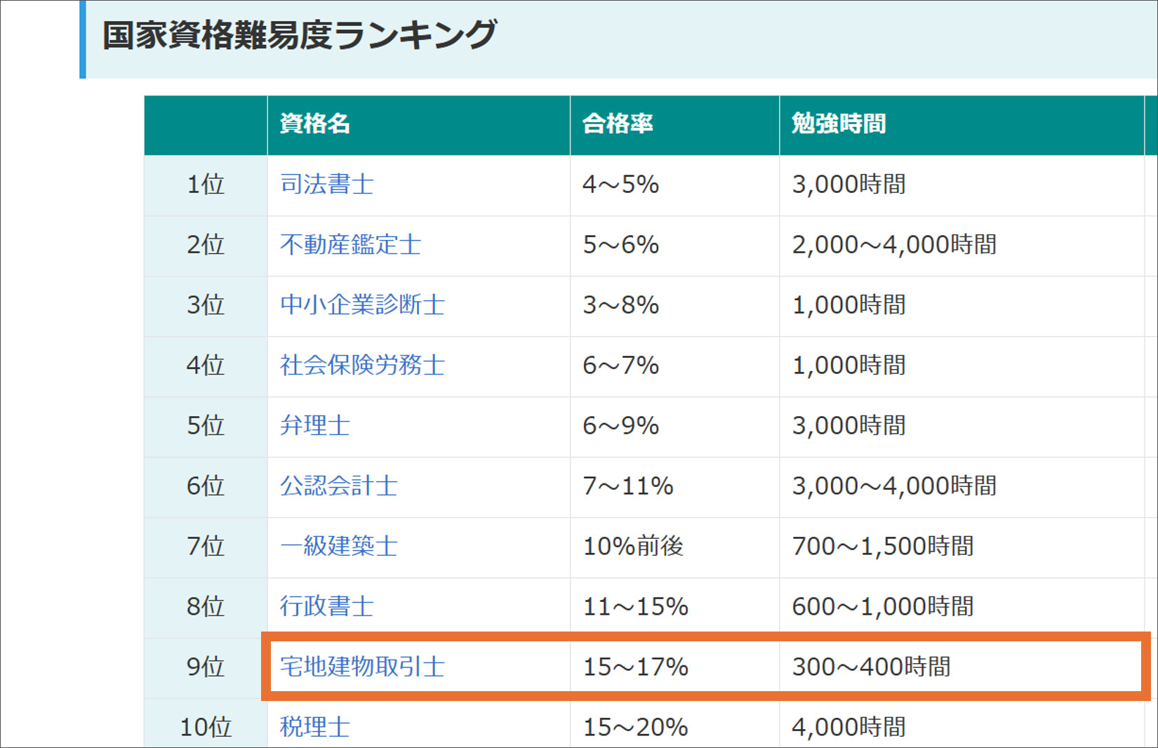 出典:ベスト進学ネット 国家資格の難易度ランキング!比較的簡単に取れる国家資格もご紹介!