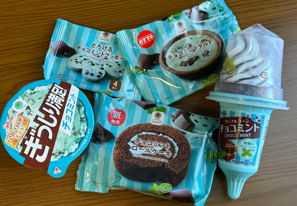 チョコミントアイス、チョコミントクッキー。チョコミントケーキ、チョコミントタルト。チョコミントマシュマロ、チョコミントドリンク。