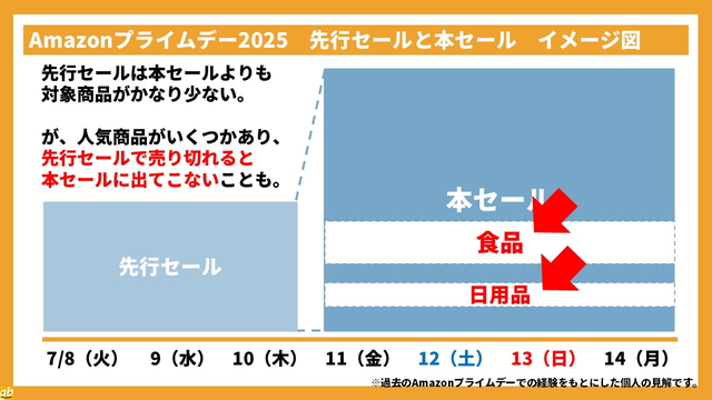 これは当然といえば当然で、ほぼすべての人にとってニーズがあるジャンルだからだ。ホビー・家電・アパレルなど、購入者がある程度限られるジャンルは買い急がなくてもよいが、食品と日用品だけは、ほしい物があれば早めに押さえておいたほうがよい。