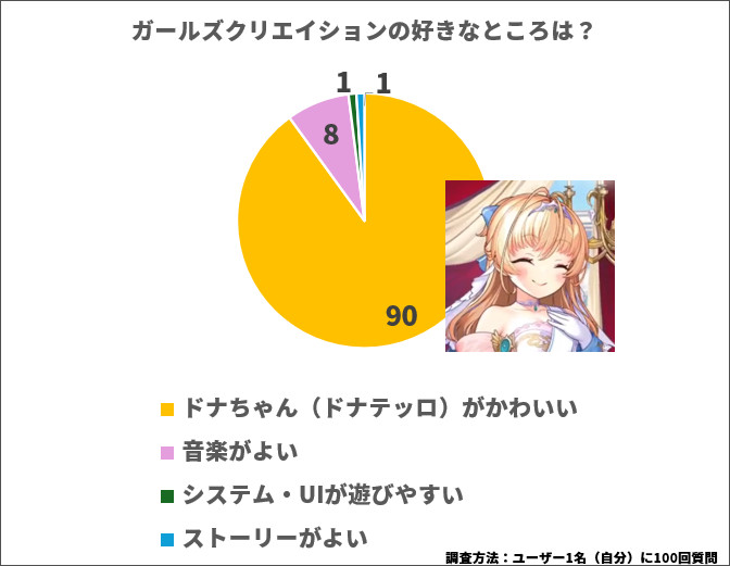 ぼく自身、一部ユーザーに「ガールズクリエイションの好きなところは?」というアンケートを取ってみたことがあるのだが、いちばん多かったのはダントツで