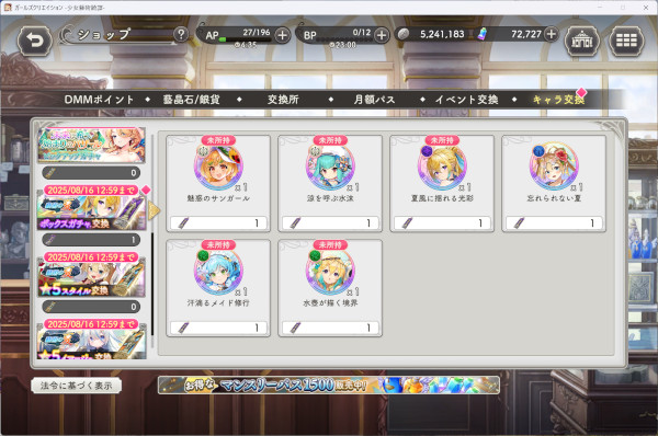 あえて言うなら、ドナちゃんには水着衣装があるらしくて、それをまだ持っていないのは残念だけど、いまはそもそも入手機会がないので