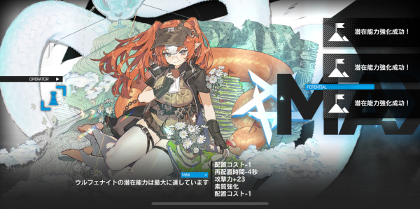 ちなみに、アークナイツを知らない人のために「潜在能力」を説明しておくと、その名の通り潜在的な能力のことであり、つまり内臓脂肪である。うちのウルフェナイトは内臓脂肪までむちむちである。