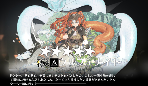 ウルフェナイトは私自身も「好きなビジュアルのオペレーターだ!メガネ!?ヘビモチーフ!?尻尾ふっと!ストーリーより前に一旦お迎えするぞ!」と歓喜しましたが、流石にこの記事みたいなスピード感はなかった……