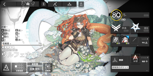 ウルフェナイトは貴重な『罠師』という職分であり、なかでも「手動で起爆できる設置型の罠を置ける」という現時点でほぼ唯一特徴を持っているが、いずれこれに近い能力を持った★6オペレーターが登場する可能性は高い。