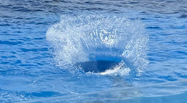 ショーを見ているとわかるのだが、イルカはジャンプ後に水しぶきをほぼ立てずにキレイに着水することも可能である。ただ、特定のタイミングでトレーナーの指示を受け、「よっしゃ! ぶちまけたろ!」と言わんばかりにわざとお腹全体で着水して「バッシャーン!」とやってくるのだ。