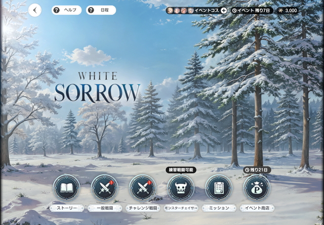 現在開催中の期間限定イベントは『WHITE SORROW』
