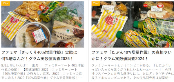 『ゲムぼく。』は2021年から、ファミリーマートの40%増量キャンペーンが実際には何%増量なのかを検証し続けている。おかげさまで多くの人に知られているし、おそらくファミマ公式も認知はしているだろう。