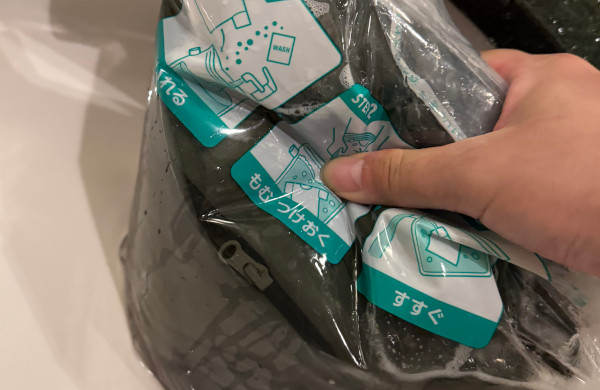 バスタブや洗面台で手で直接ゴシゴシ洗ったほうが洗浄力は高いのではと思っていたが、袋のなかで揉んだり振ったりすることにより洗浄力は思った以上に高い。特に「振る」は強い。