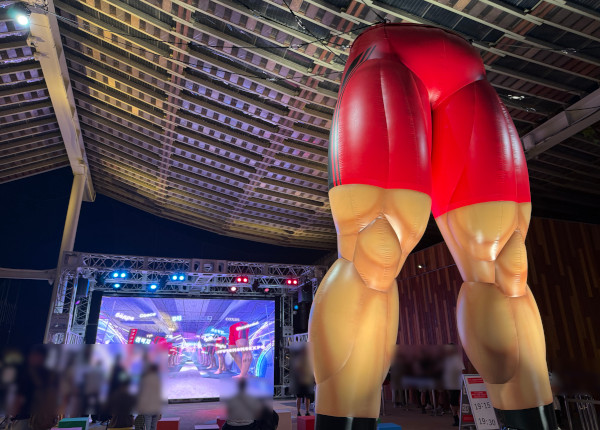 この高さ10mは軽くあろうかというムキムキ下半身バルーンの印象が強烈すぎて「このブース頭おかしいんか?」と思ってしまう人もいるだろうが、安心してほしい。