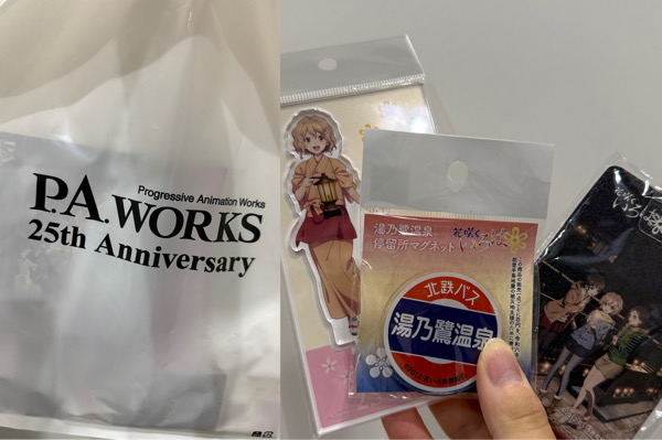 「さっき1階にP.A.WORKSっていうアニメ会社のブースを見つけてしまって、グッズを買ってきました」