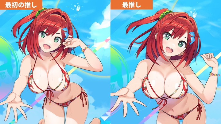 ご覧の通り、どちらも大関小結ではあるのだが、その見た目はもはや別人と言ってよい。実際、メインストーリーでも比良坂 夜露(ひらさか よつゆ)に「どちら様ですか?」と言われてしまっていた。