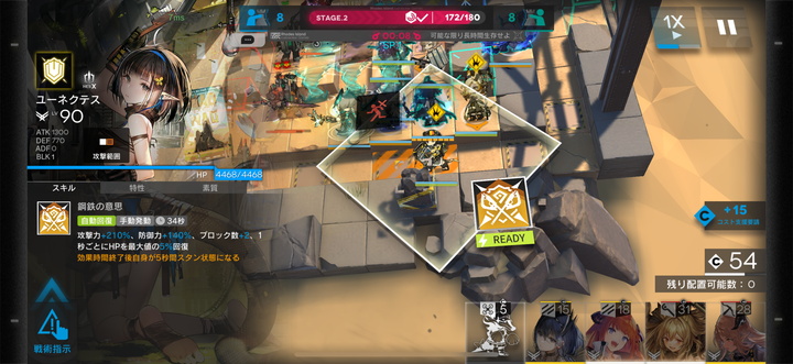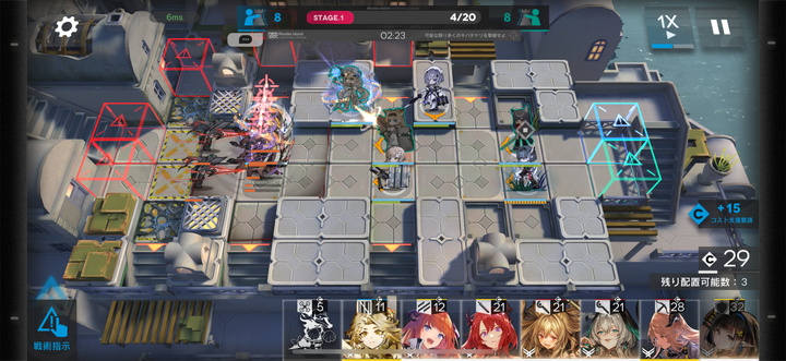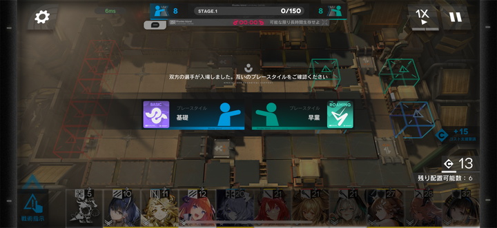協心競技は基本的に2つのステージで構成されており、1ステージ目はコーチの人がほとんどの敵を倒してくれた。ぼくはせめてユーネクテスなどの強いオペレーターを置こうと思ったが、配置を迷っているうちに終わった。