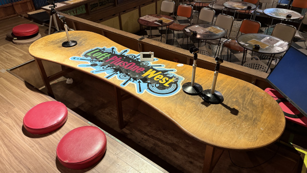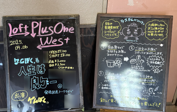 トークライブの形式というのはライブハウスによってさまざまなわけだが、ここロフトプラスワンウエストでは、こんな感じの場所に座って、