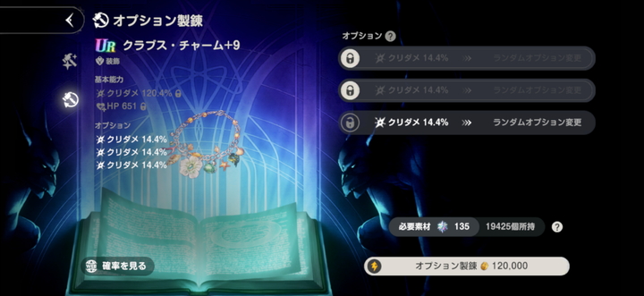 アタッカーの装備のオプション製錬は、究極的には「クリダメ」だけで固めることが望ましい。