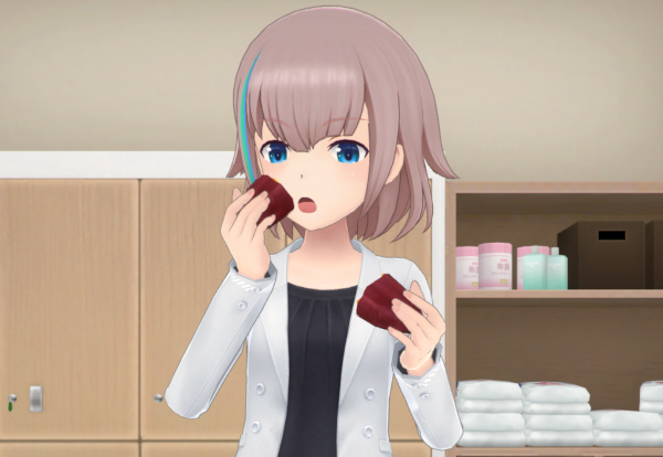 ちゃんと割って食べるぞ! わざわざこれのためだけに焼きいもを食べるモーションがゲーム内に新規実装されているぞ! お金取ったほうがよくない!? 無料雑誌の無料プレゼントで配るクオリティじゃなくない!?