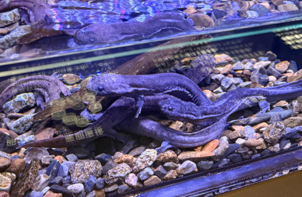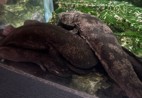 オオサンショウウオ自体はほかの水族館でも見られるが、ここのオオサンショウウオは1匹1匹が格段にデカく、その数も異常に多い。こんなにオオサンショウウオが重なり合って木や岩みたいになってくつろいでる水族館見たことない! 特別天然記念物ワゴンセール!