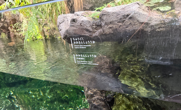 日本の水族館は、入口すぐが地元の川や海を再現した水槽になっていることが多く、京都水族館も例外ではないのだが、そこにふつうにオオサンショウウオがいる。