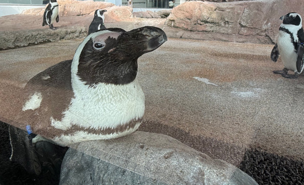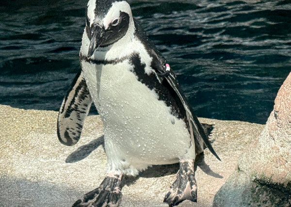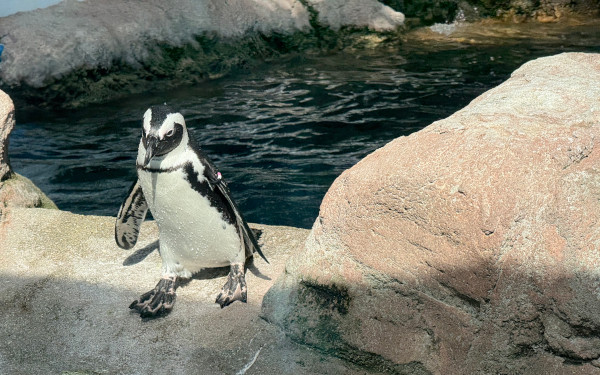 ケープペンギンはフンボルトペンギンに次いで日本で二番目に多く飼育されているペンギン! その名の通りアフリカのケープタウンをはじめとする温暖な地域に住むペンギンで、日本の気候にも適応しやすい! フンボルトペンギンとよく似ているが、見た目のわかりやすい違いは目の上がピンク色なこと!