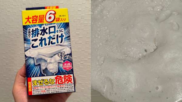 お風呂の排水口を掃除するための泡モコモコ粉末。