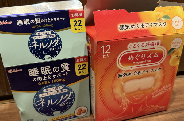 ホットアイマスクはレンジでチンして繰り返し使えるタイプも良いですよ。ゆたぽんとかあずきの力とか