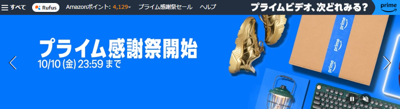 2025/10/07(火)~2025/10/10(金)の4日間、Amazonプライム感謝祭が開催!