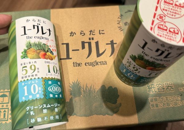 これはキウイジュースっぽい味のスムージーで、とてもおいしい。今回かなり安くなっているので、ユーグレナが気になっている人はこれを機に試してみるとよい。常温でもいけるが、冷蔵庫で冷やすとよりおいしいのでおすすめ。