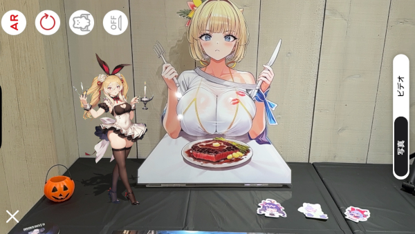 店内では、FanTopデジタルアクリルスタンドの、ふつうだと手に入らないリアトリスが無料でダウンロードできるので……