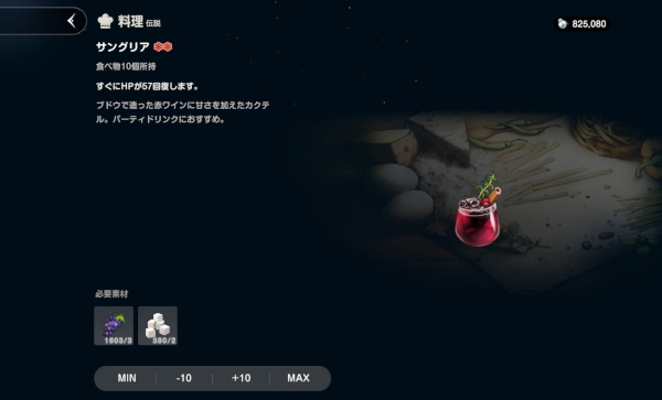 ちなみに、ゲーム内にサングリアという料理があり、これはその再現にもなっている。