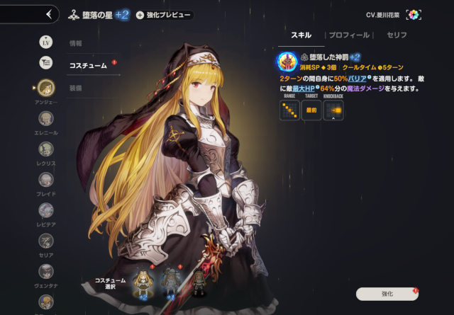 これは、ストーリーカセット(メインストーリー)でも活躍するアンジェリカの別衣装バージョンにあたる。