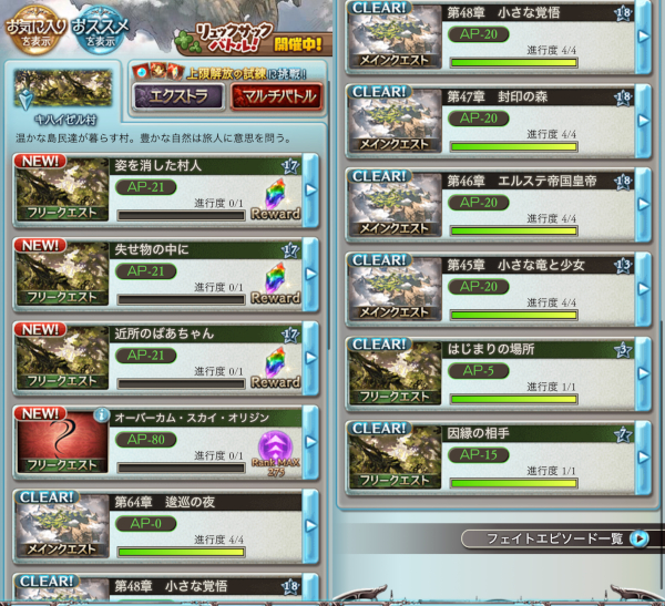 グラブルはクエストの導線がこう……歴史なんですよね……