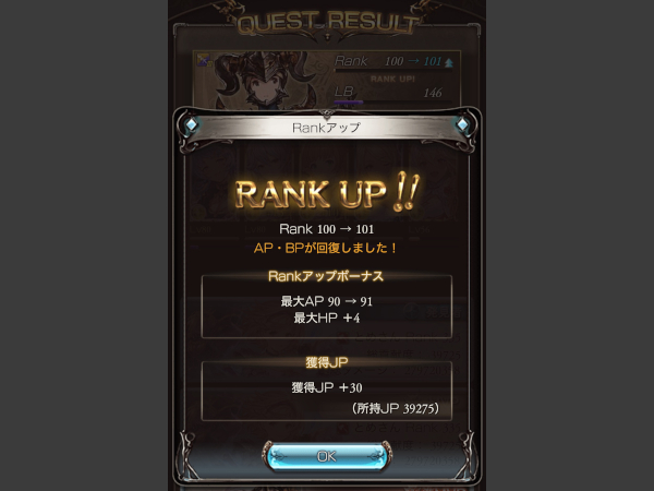 Rankが頭打ちの時はクエストリザルトのRankにMAXって付くぞ!