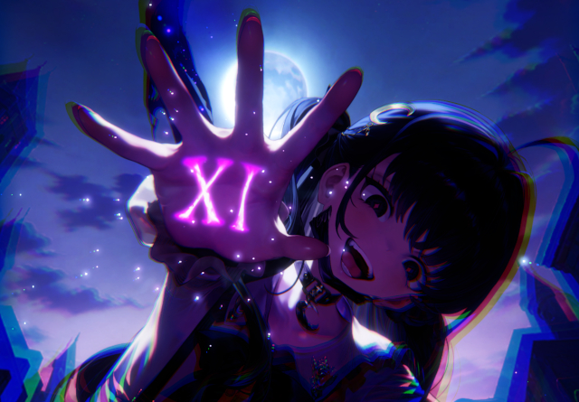 闇の力を行使する瞬間に、手のひらにレヴェリスの証が浮き上がる。彼女の証は「XI」の紋章だ。
