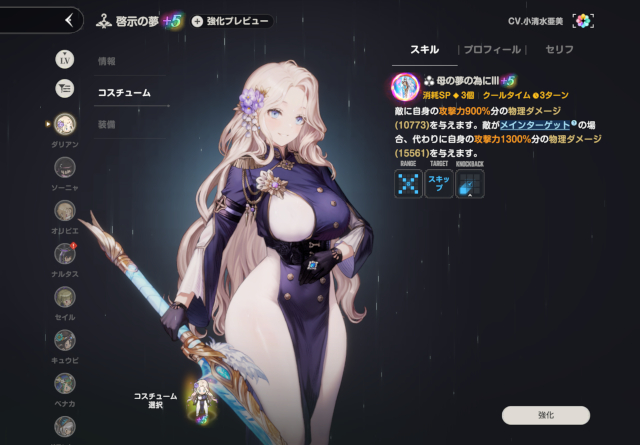 彼女の場合は、スキル『母の夢の為に』を使用すると、