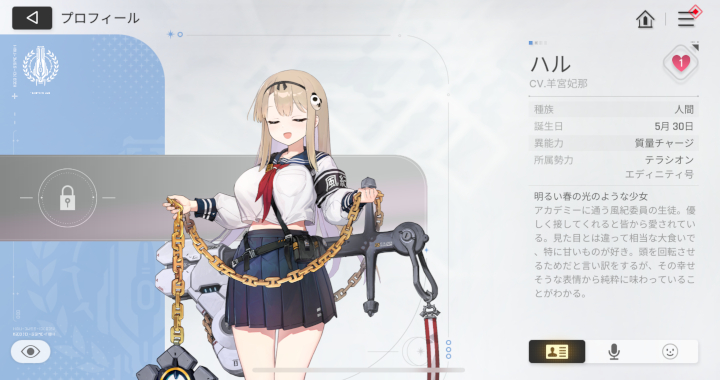 甘いものが大好きな元気で明るい大食い少女! 鉄塊のごとき鎖付きアンカーを振り回して戦うパワー系むちむち! ハル参上!