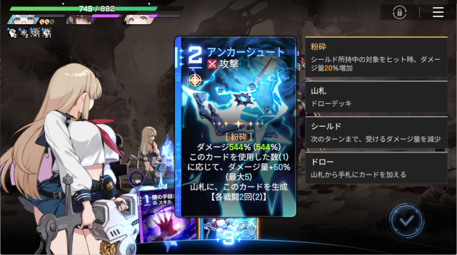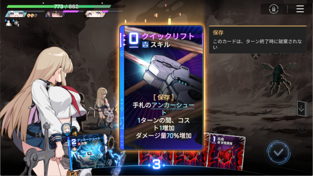 クイックリフトで、手札のアンカーシュートを強化だ! コストが1増えるかわりにダメージ量70%増加!