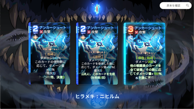 低コストで手数の多い攻撃ができたり、状態異常の『苦痛』で継続ダメージを付与したりできるので、いろいろと小回りが利く。