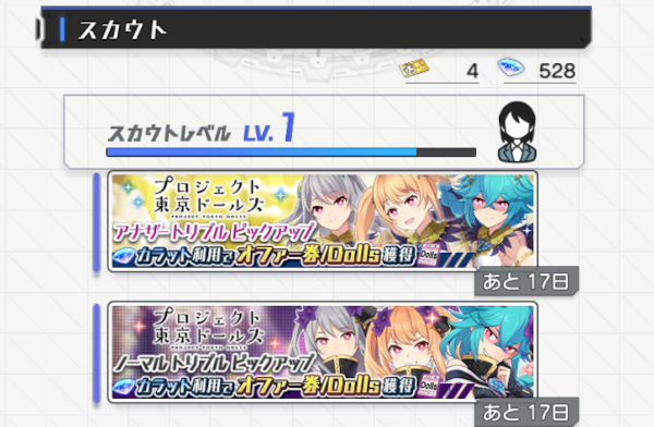 なお、注意点がふたつ。アリスギアのスカウト(ガチャ)にはいわゆる「天井」が基本的にない(今回は特別にいちおうあるがかなり高い)ことと、スカウトレベルはアヤ、ユキ、ヤマダ以外の★4が出たときでもリセットされてしまうことだ。運が悪いとドツボにハマるので、気をつけよう。