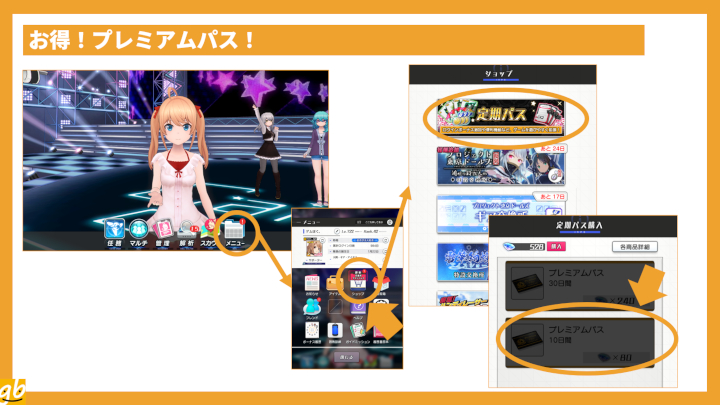 アリスギアの主要な課金要素は『スカウト』と『コスチューム』だが、それ以外に『プレミアムパス』というものがある。ほかのゲームで言う『シーズンパス』などに近い。