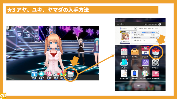 先述の通り、最高レアである★4のアヤ、ユキ、ヤマダは、スカウト(ガチャ)で低確率で入手できる。