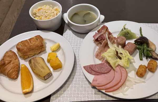 そして、翌朝。また一番乗りで朝食ビュッフェに行き、好きなように取ると……