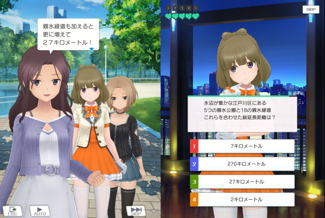 ただ、アリスギアは本気度が違う。単に「登場人物たちが江戸川区を知っていくお話をやりますよ~よかったら読んでね~」ではなく、ユーザーに本気で江戸川区の知識を叩き込もうとしてくる。「キャラじゃなくてお前が江戸川区のことを学ぶんだよ!」と迫ってくる。