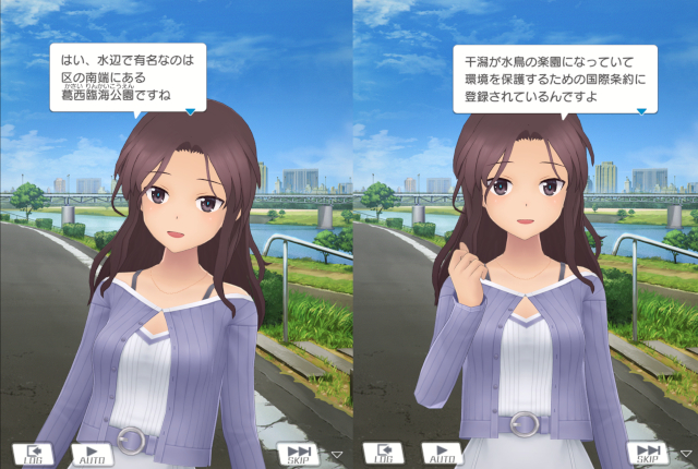 このイベントは、佐士原 七海(さしはら ななみ)と蒼浜 麻駆理(あおはま まくり)の新バージョン『アナザー』実装を記念したイベント。ゆえに江戸川区を紹介するのだ。