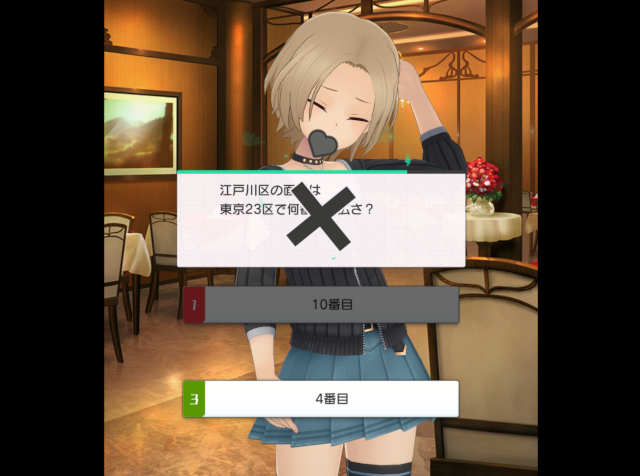 間違いなく、アリスギアはいま世界一江戸川区クイズが多い美少女ゲームだ。そもそもふつう美少女ゲームに江戸川区クイズはない。